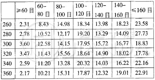 試驗結(jié)果測量:1 含量測試(采用非水滴定法測得);2 白度測試(采用數(shù)字白度儀測得);3 水分測量(采用鹵素水分測定儀測量);4 顆粒分布測量(每組取200g干品,經(jīng)過電動振篩機(jī)的60-160目篩網(wǎng)篩分后,計算每個目數(shù)范圍的重量比重)